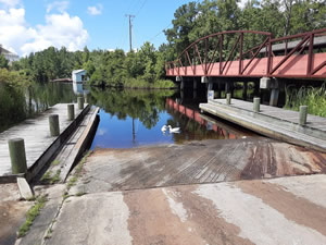 Parking for three to five cars. The 24-acre park north of the ramp has bike and hiking trails. Im not too good with directions If youre coming to the bridge from surfside beach its about 14 mile from the bridge on the.